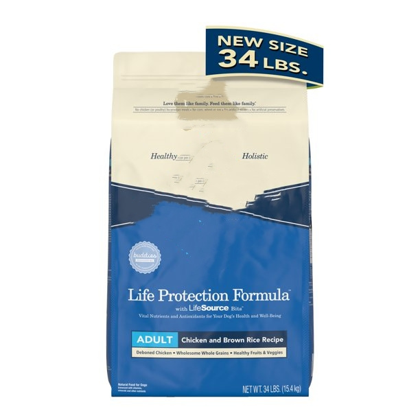 5.Contains one (1) 24 lb. Bag or 34 lb. Bag of Life Protection Formula Adult Dry Dog Food, Chicken and Brown Rice